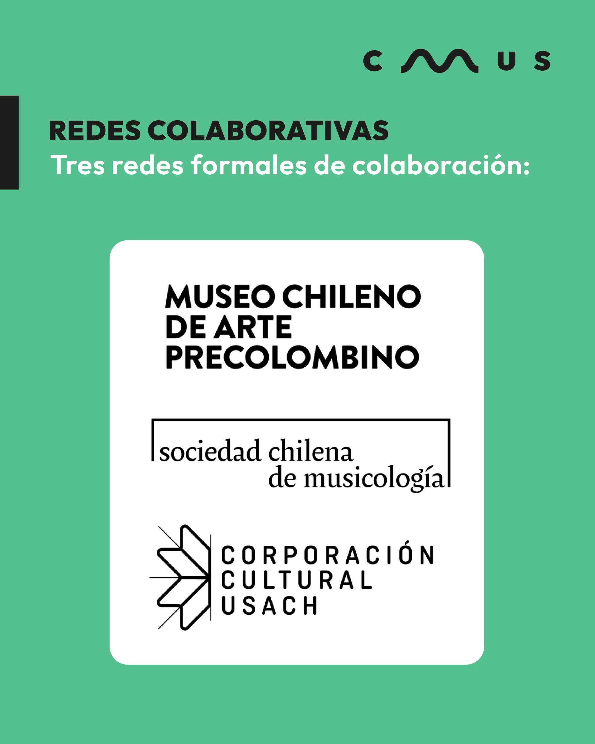Desde su formulación inicial, el CMUS definió el desarrollo de redes formales de colaboración como un eje estratégico orientado a garantizar continuidad institucional, fortalecer el trabajo interdisciplinario y generar condiciones para la producción científica de alto nivel a través de tres convenios principales. En primer lugar, el acuerdo con el Museo Chileno de Arte Precolombino permitió establecer una colaboración orientada al desarrollo de actividades conjuntas en torno a investigación, mediación cultural y circulación del conocimiento, incluyendo el intercambio de investigadores, la organización de eventos y la generación de espacios de diálogo entre investigación académica y prácticas culturales.