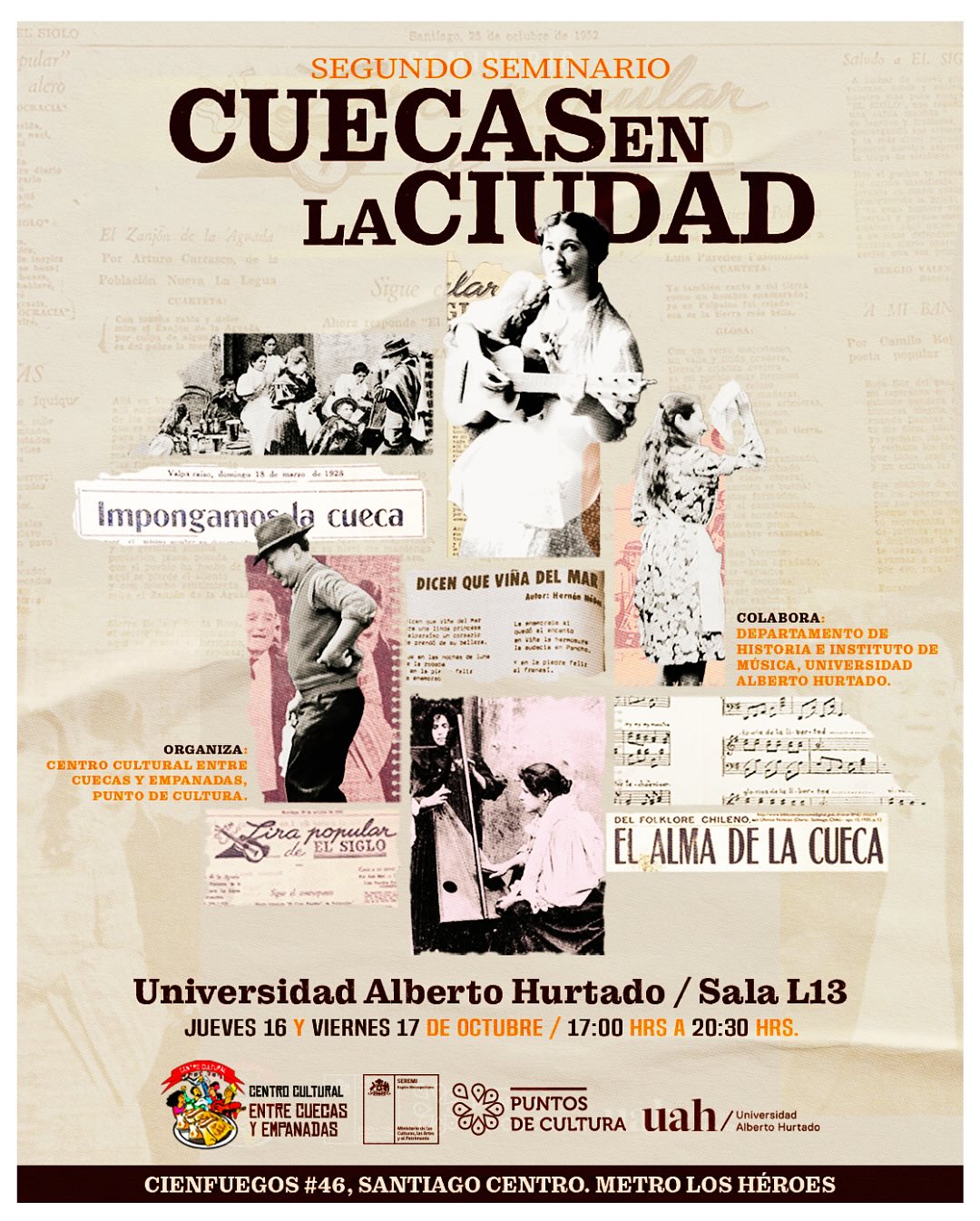 The event, which will take place on Thursday, October 16 and Friday, October 17, is organized by the Entre Cuecas y Empanadas Cultural Center, Punto de Cultura, in collaboration with the Department of History and the Institute of Music of the University of Santiago de Compostela (UAH), and sponsored by the Puntos de Cultura Program, Ministry of Culture, Arts, and Heritage.