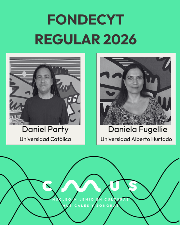 Daniela Fugellie and Daniel Party, principal investigators at CMUS, were awarded Fondecyt Regular grants. Fugellie, an academic at Alberto Hurtado University, was awarded a grant for her work “Canon, Translation and Resignification: Cultural Transformations of European Music in Chile (1925-2025)”; while Party, a professor at the Catholic University, was awarded a grant for “Gender Gap and Gender Performance in Latin Collaborative Songs.”