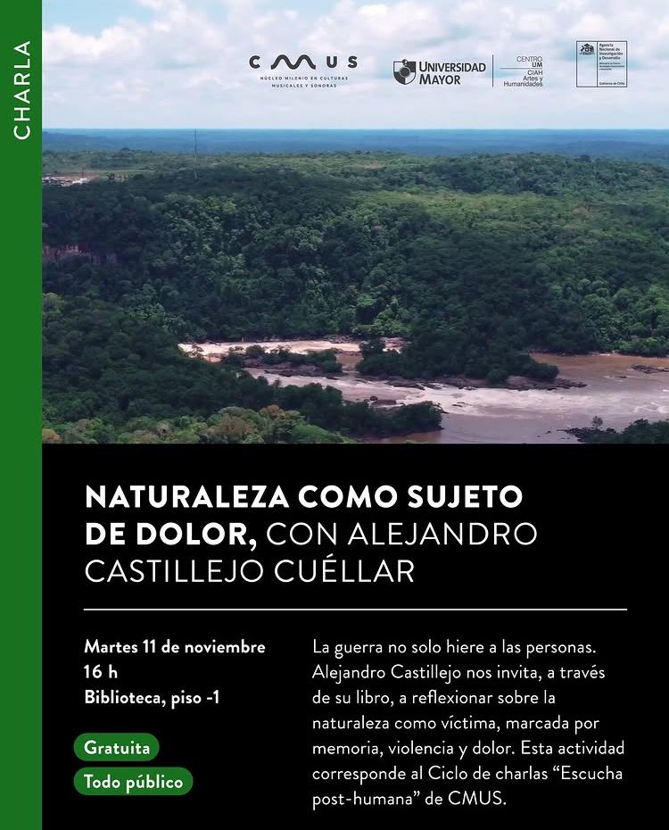 El próximo martes 11 de noviembre CMUS tiene invitado internacional. Se trata del académico colombiano Alejandro Castillejo Cuéllar que dará una conferencia en el Museo Precolombino que será abierta a todo público y gratuita. La actividad se enmarca en el ciclo de charlas de Escucha y Post Humanismo, que organiza NIMSE a cargo de la investigadora adjunta de CMUS, Natalia Bieletto.